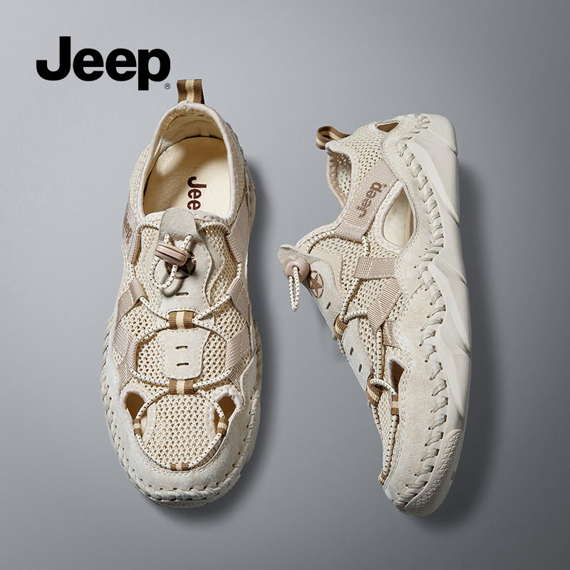 jeep jeep baotou sandals men's summer wear soft bottom breathable leather sandals genuine leather casual beach hole shoes