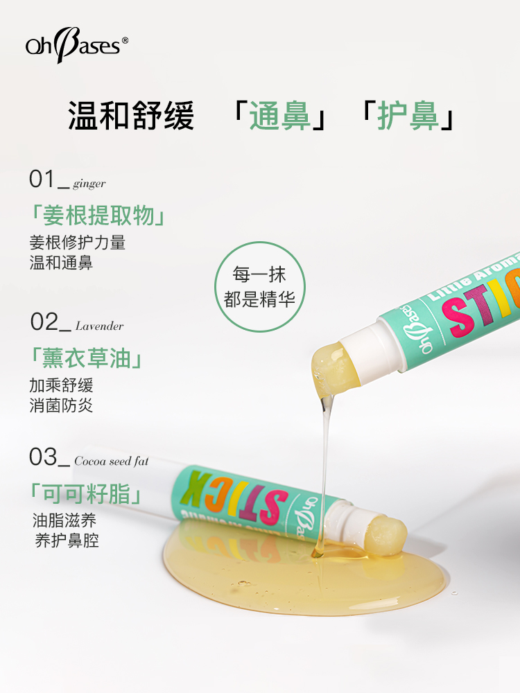American Obixin OhBases Children's ginger root nasal Snoose Nasal Cream pregnant woman available with refreshing small green stick