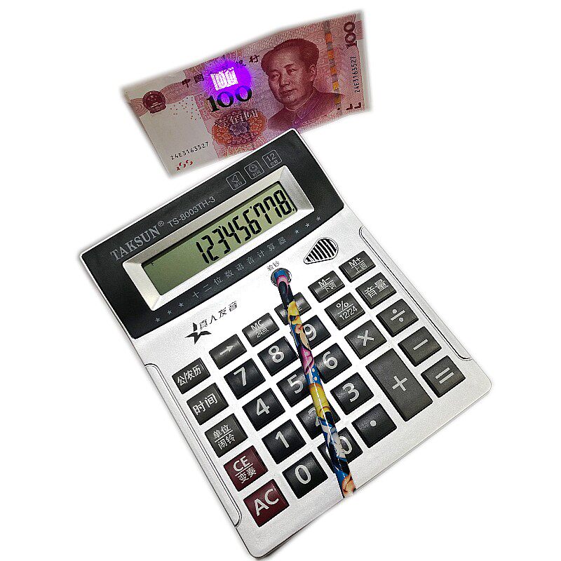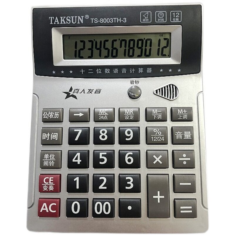 Dexon 8003TH Live Speech Calculator 12 - digit large screen with music calendar banknote verification computer batch