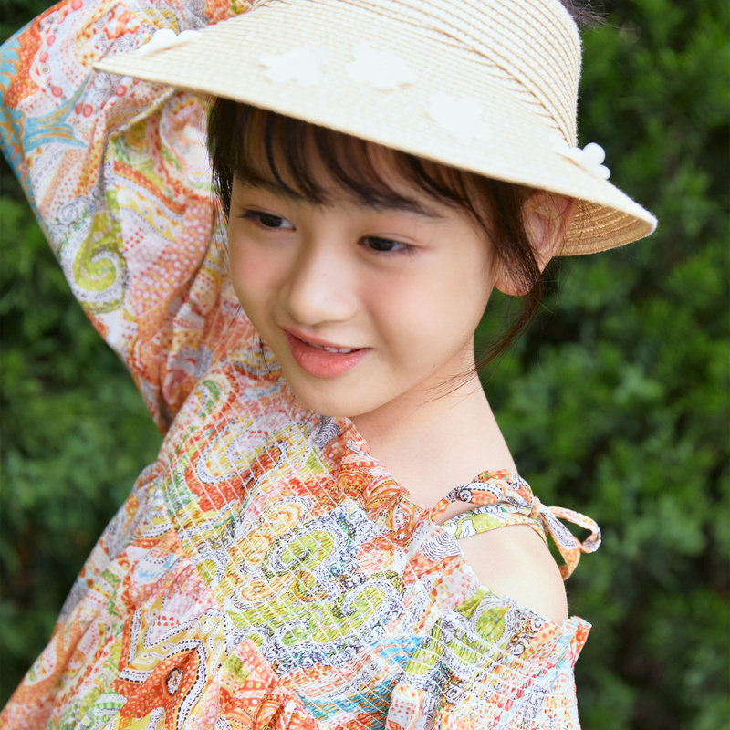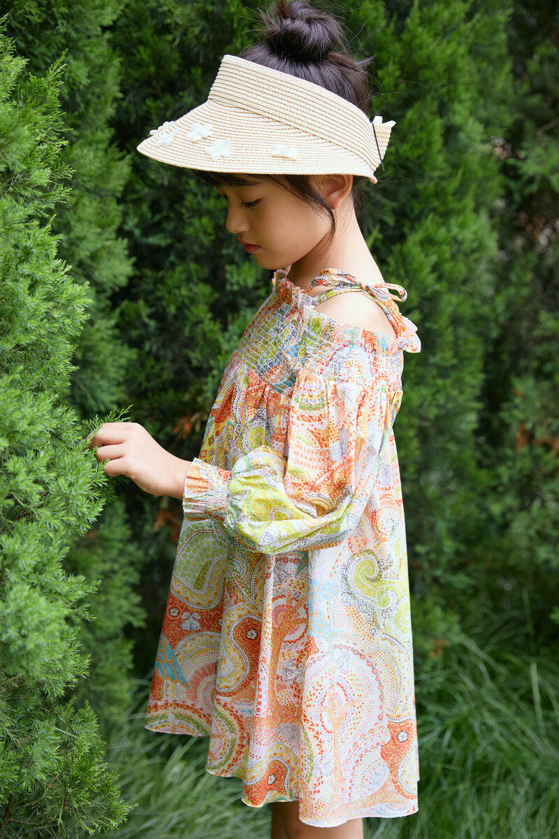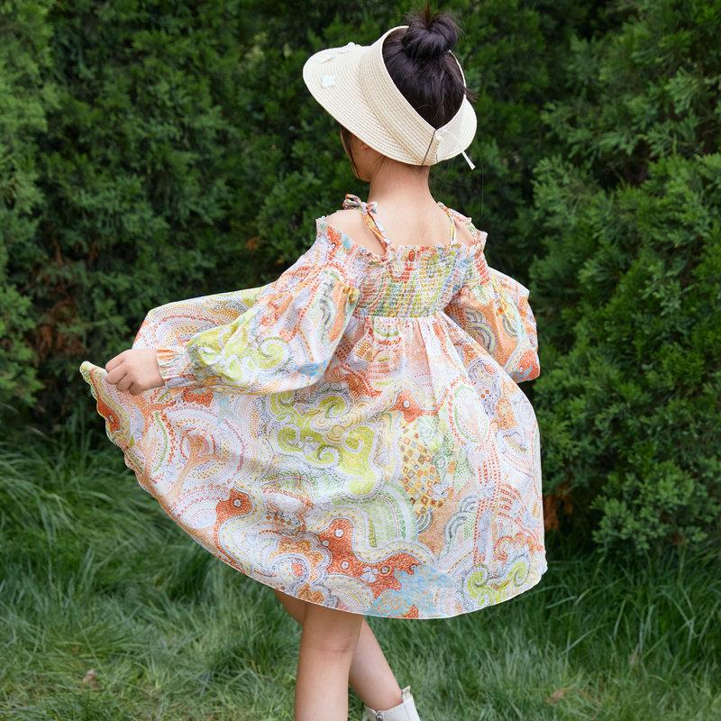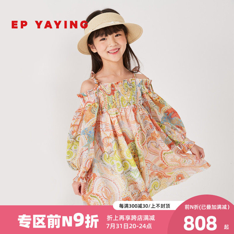 Mall Same-style EP YYing Tong-clothing 2022 Summer Girls' new foreign printed holiday Wind Shoulder Foreign Dress
