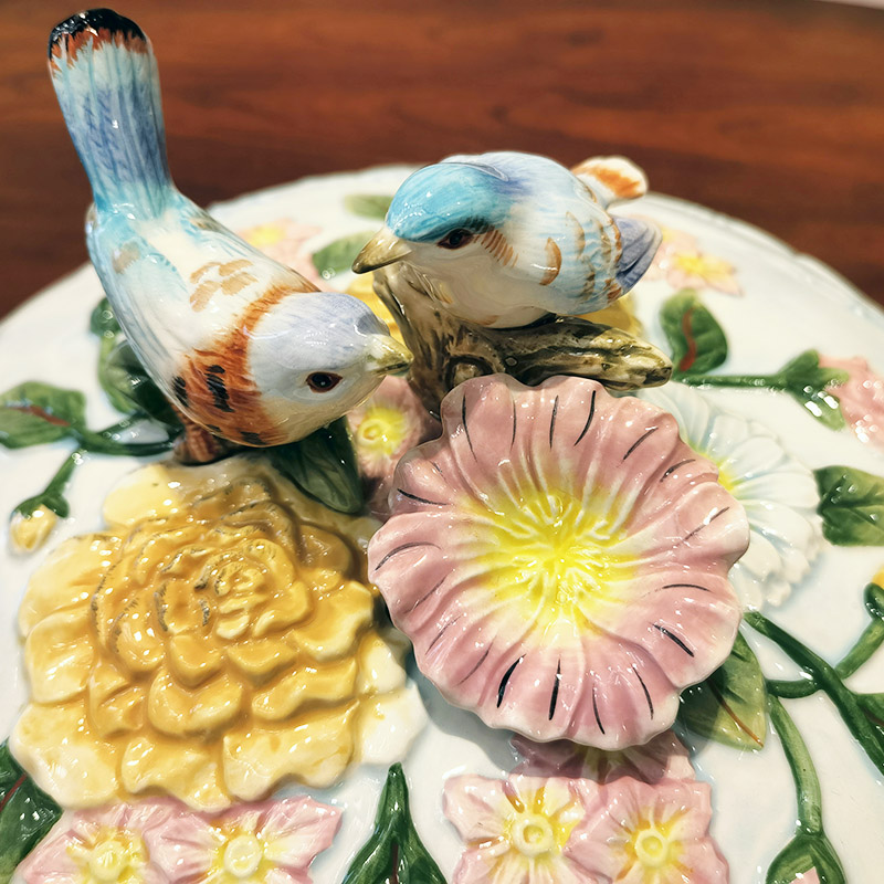 Eurostyle Ceramics Creative Eu Rhyme Green Flowers sugar box with separated fan-shaped small saucer melon Sub-disc big number Snack Fruit Dish