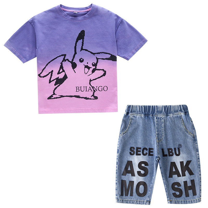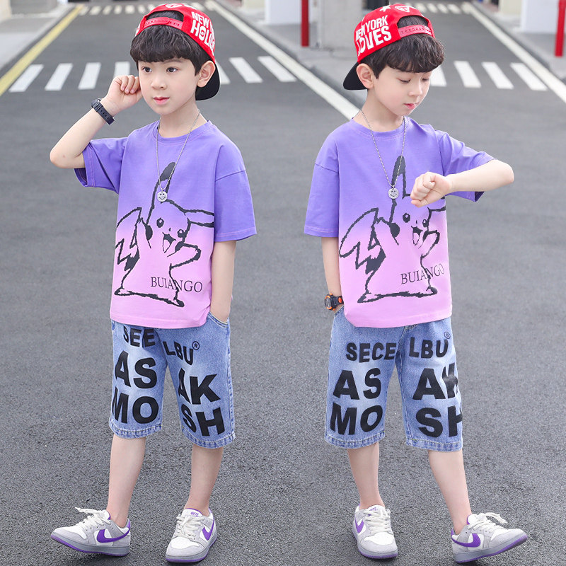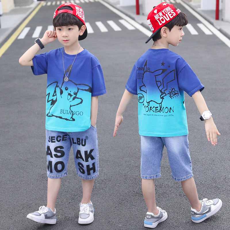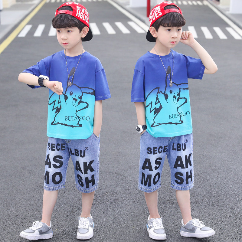 Children Suit Boy Summer Clothing Suit 2022 New Summer Sports Handsome BOY THIN Thin Short Sleeve Clothes Tide