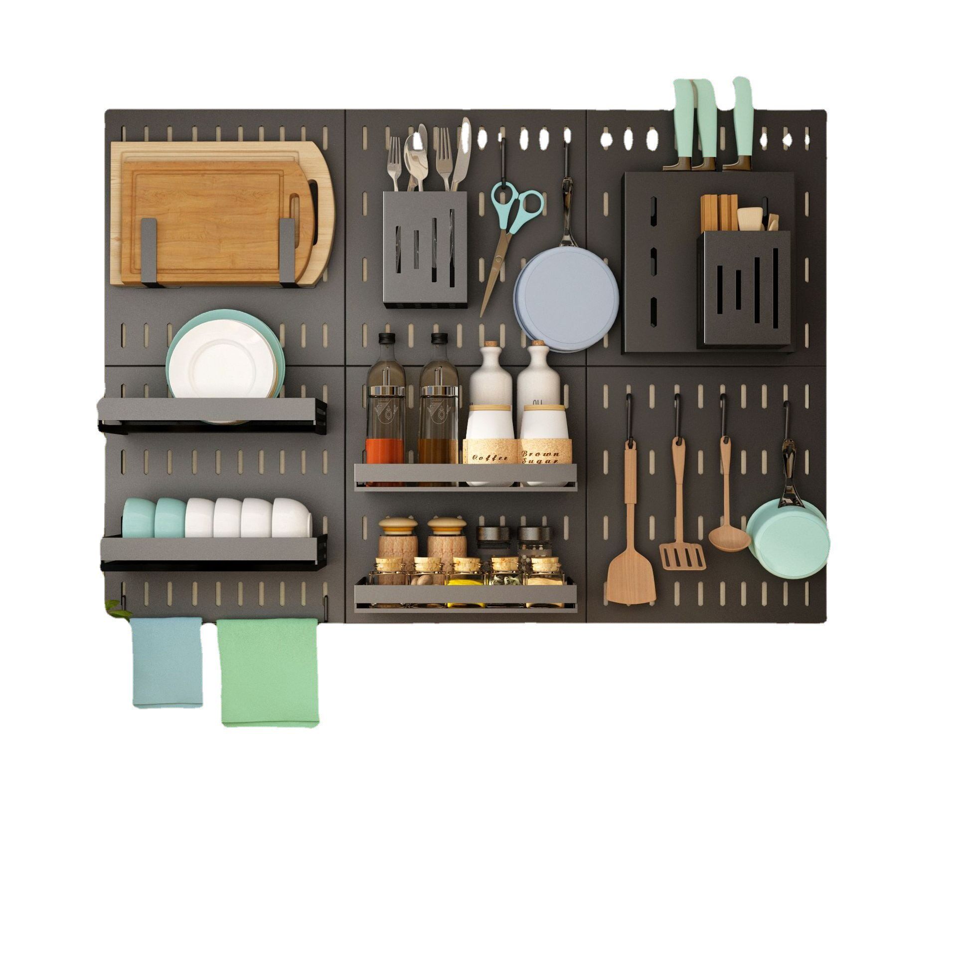 30 wide back plate Bowl rack Dish rack Flat hook*3 30 wide back plate Seasoning jar rack*2 Flat hook*3 30 wide back plate Knife holder Chopstick cage Flat hook*3 30 wide back plate U