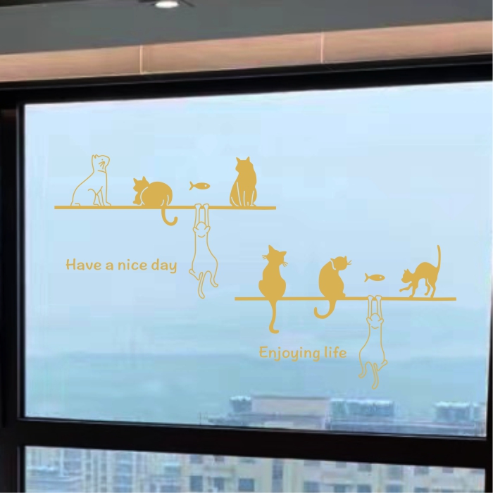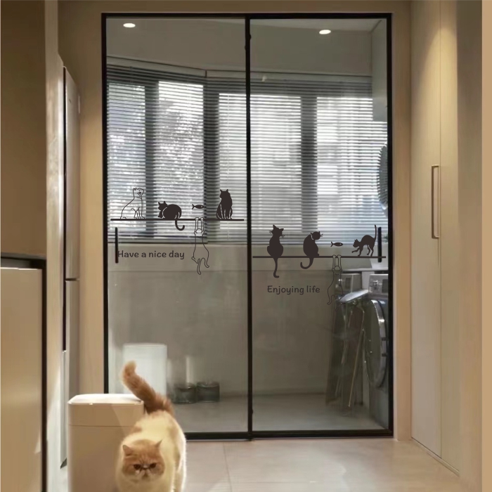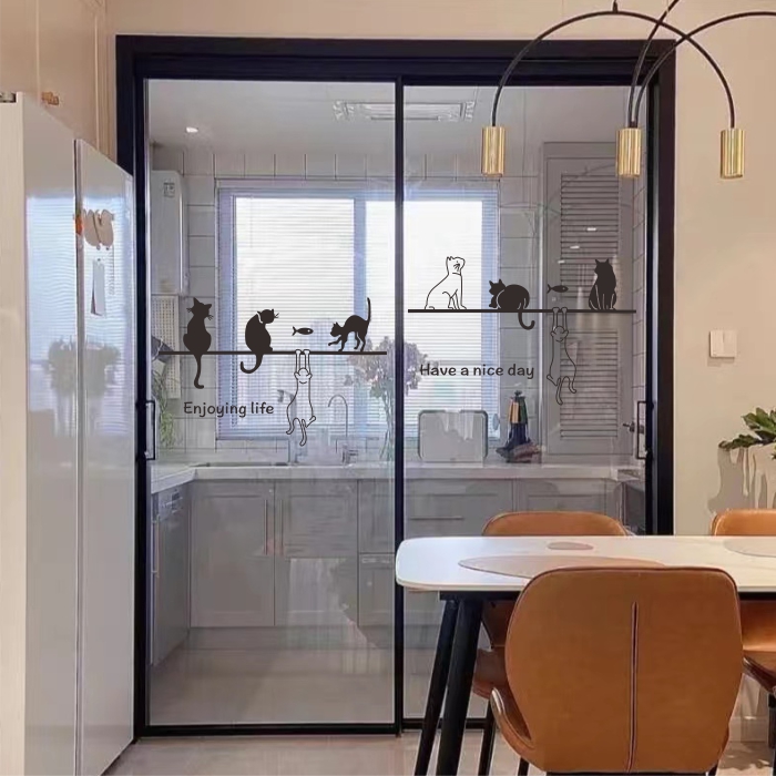 ins wind kitchen balcony glass sliding door sliding door wall stickers cat decoration anti-collision stickers painting window pattern stickers