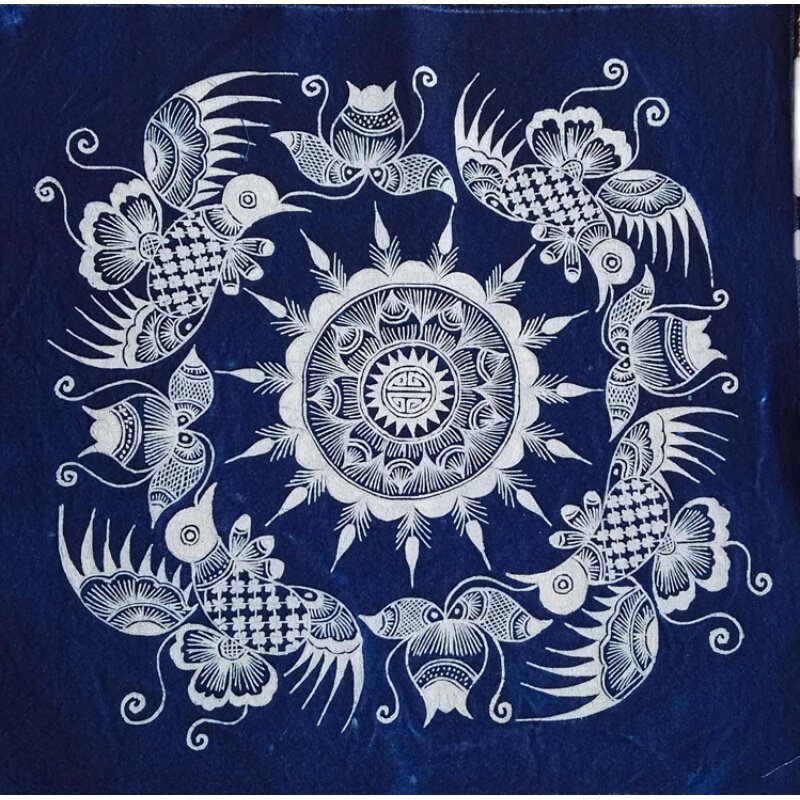 Batik cloth custom retro-style cotton tablecloth pillow cloth wall hanging plant dyed indigo cultural and creative fabric non-heritage craftsmanship