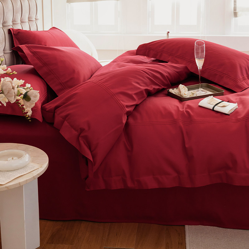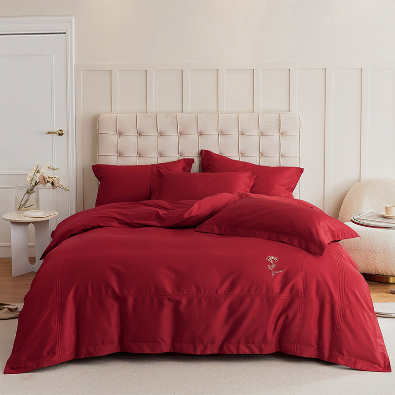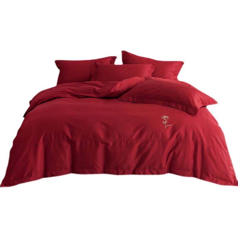 High-end minimalist romance 100 long suede cotton wedding with four sets of pure cotton large red wedding bed, supplies rose