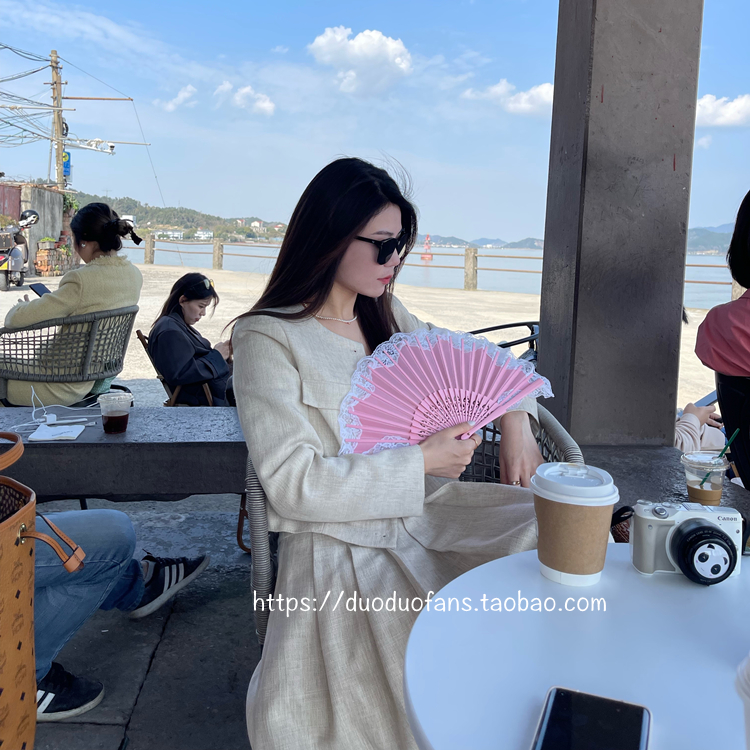 Han Fu National Tide Lace Fan Wooden Fan Flag Robe Fan dance fan Ancient Wind White Fan Powder Fan girl's heart retro style
