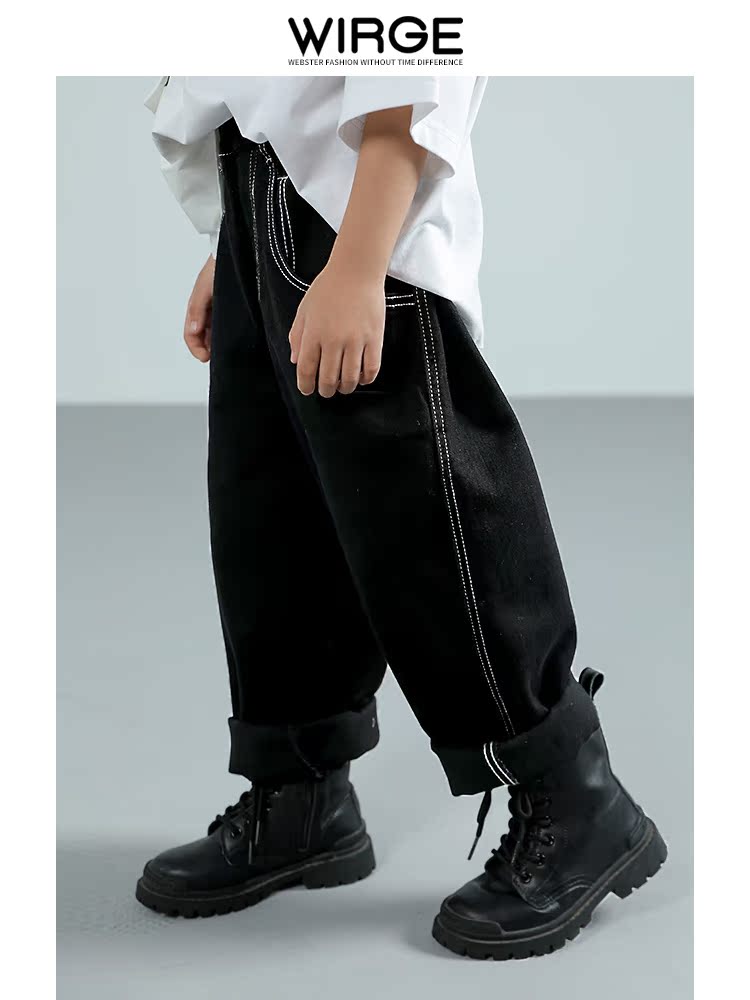 Webster's Boys and Girls Jeans Loose High Waist 2022 Early Autumn New Style Big Children's Clothing Children's Pants on the Street
