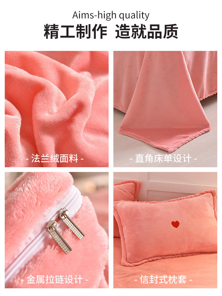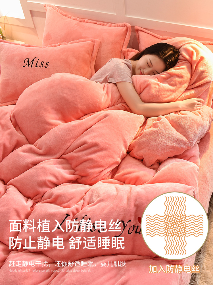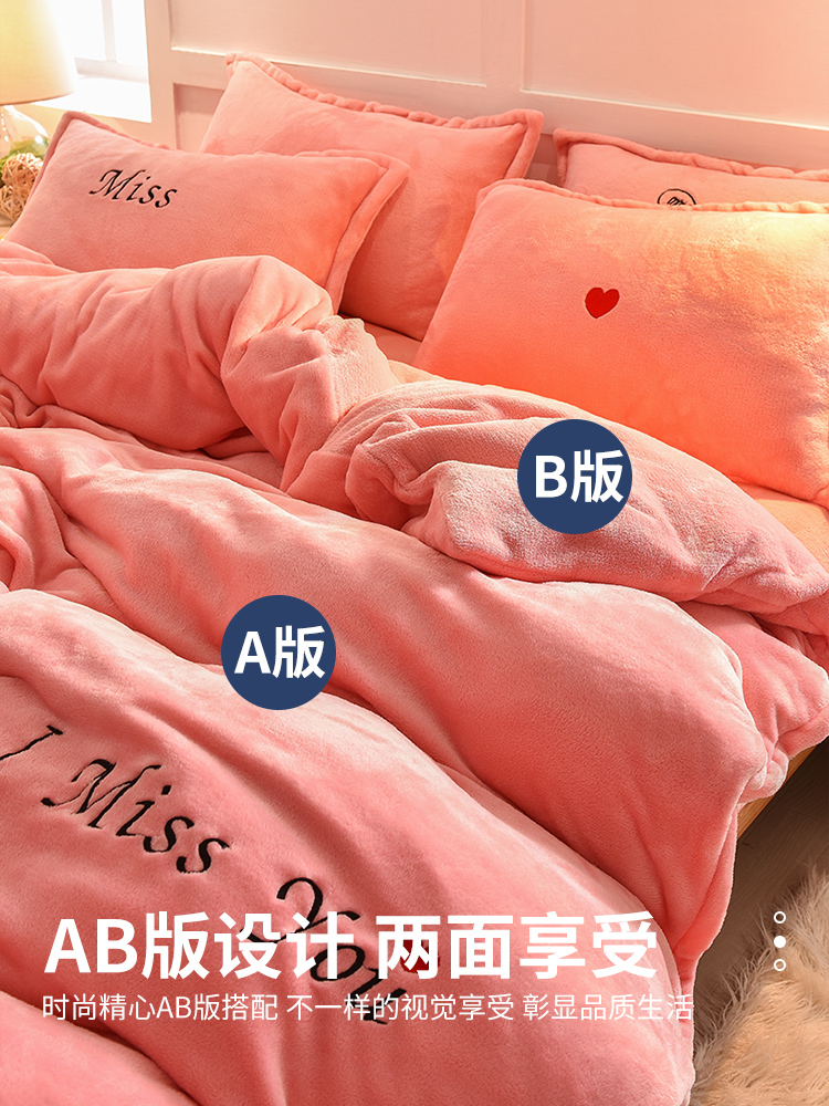Mercury Home Spinning Heat Warm Flag Bed Four Pieces of Winter Double-sided Coral Velvet Three Pieces of Cream Bed