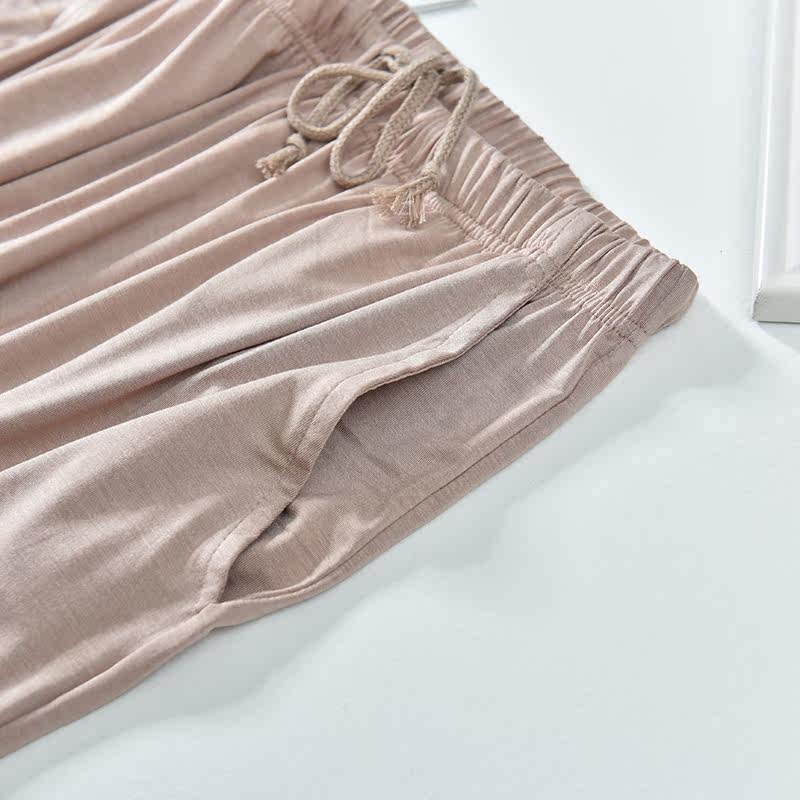 High Support High Density Mordale Sleeping Pants Lady Summer Thin Trousers Long Pants Pure color minimalist ropes Loose Straight Cylinder Home Pants