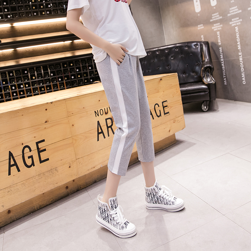 Small Sub Pregnant Woman Pants Summer Thin 7 Pants Outside of casual sports Intra Belly Lap Pants Pregnant pregnant woman summer fit 50% pants