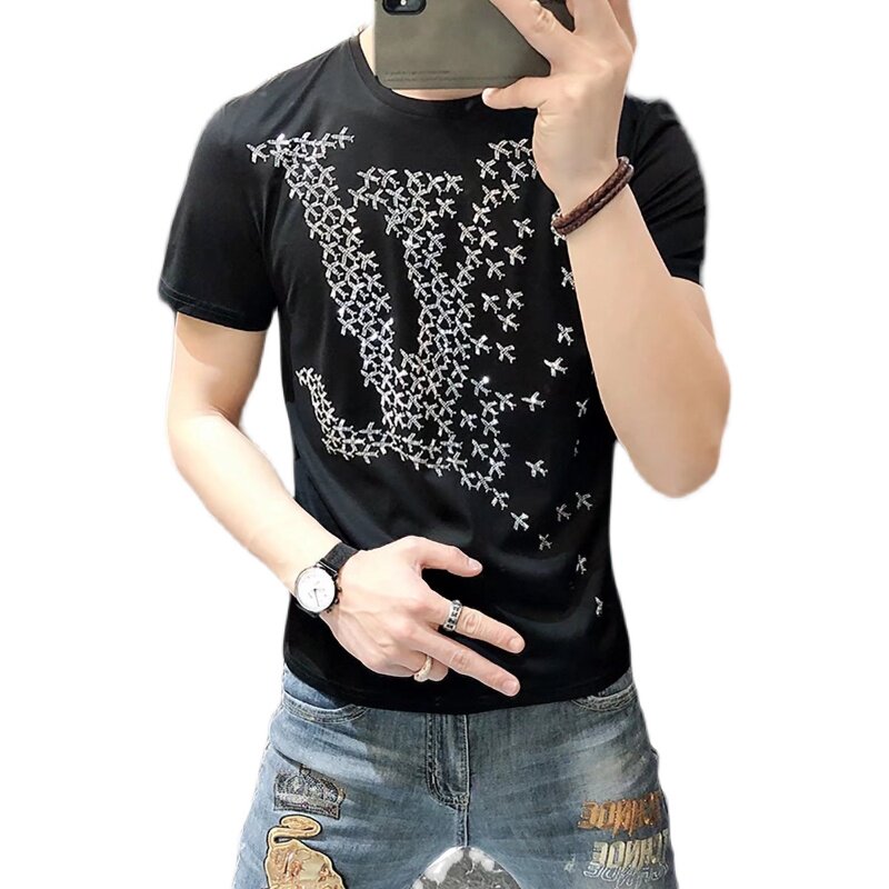 European station pure cotton short-sleeved T-shirt men's summer tide top Hong Kong style loose slim fit solid color sleeve t body 22 hip-hop hot drill