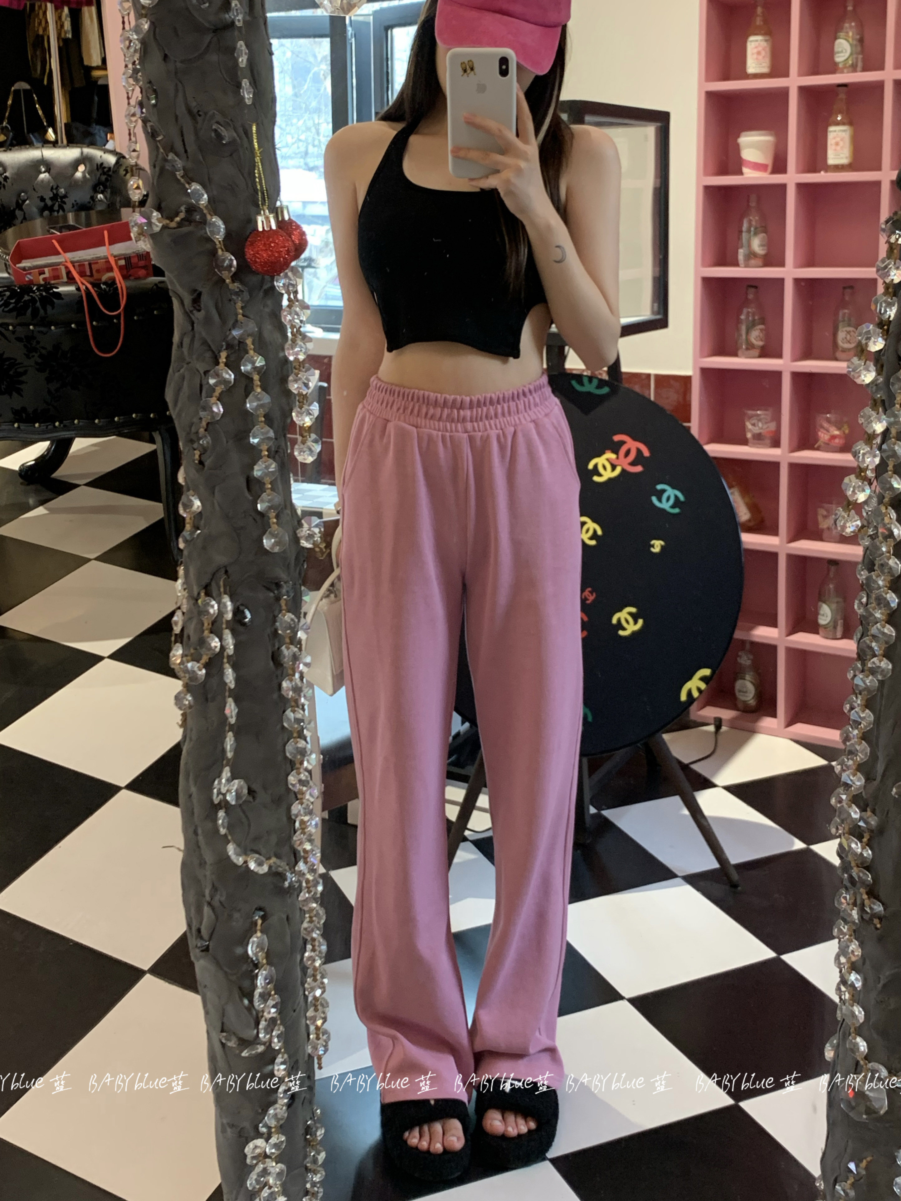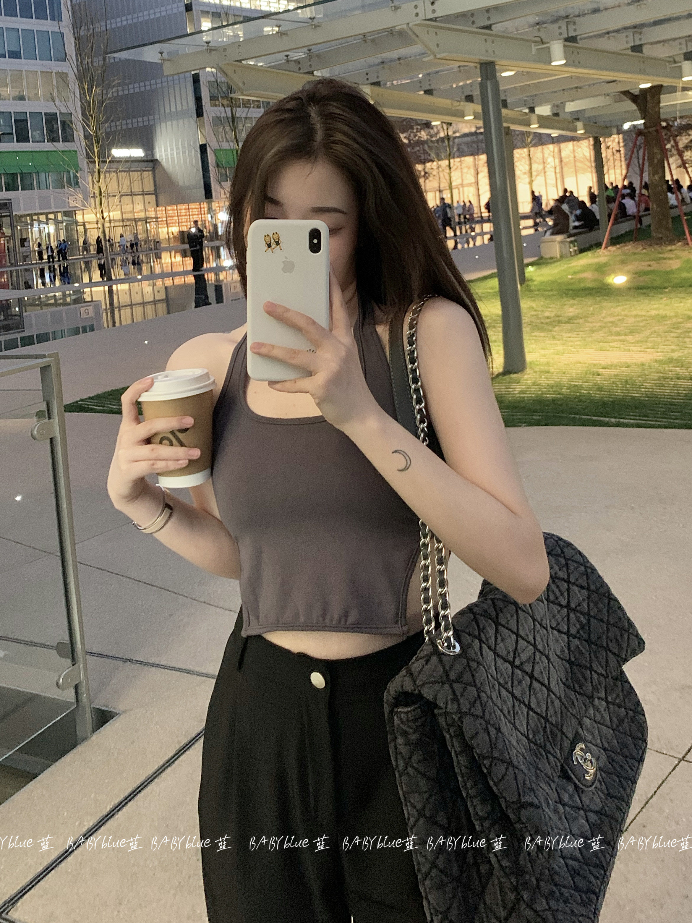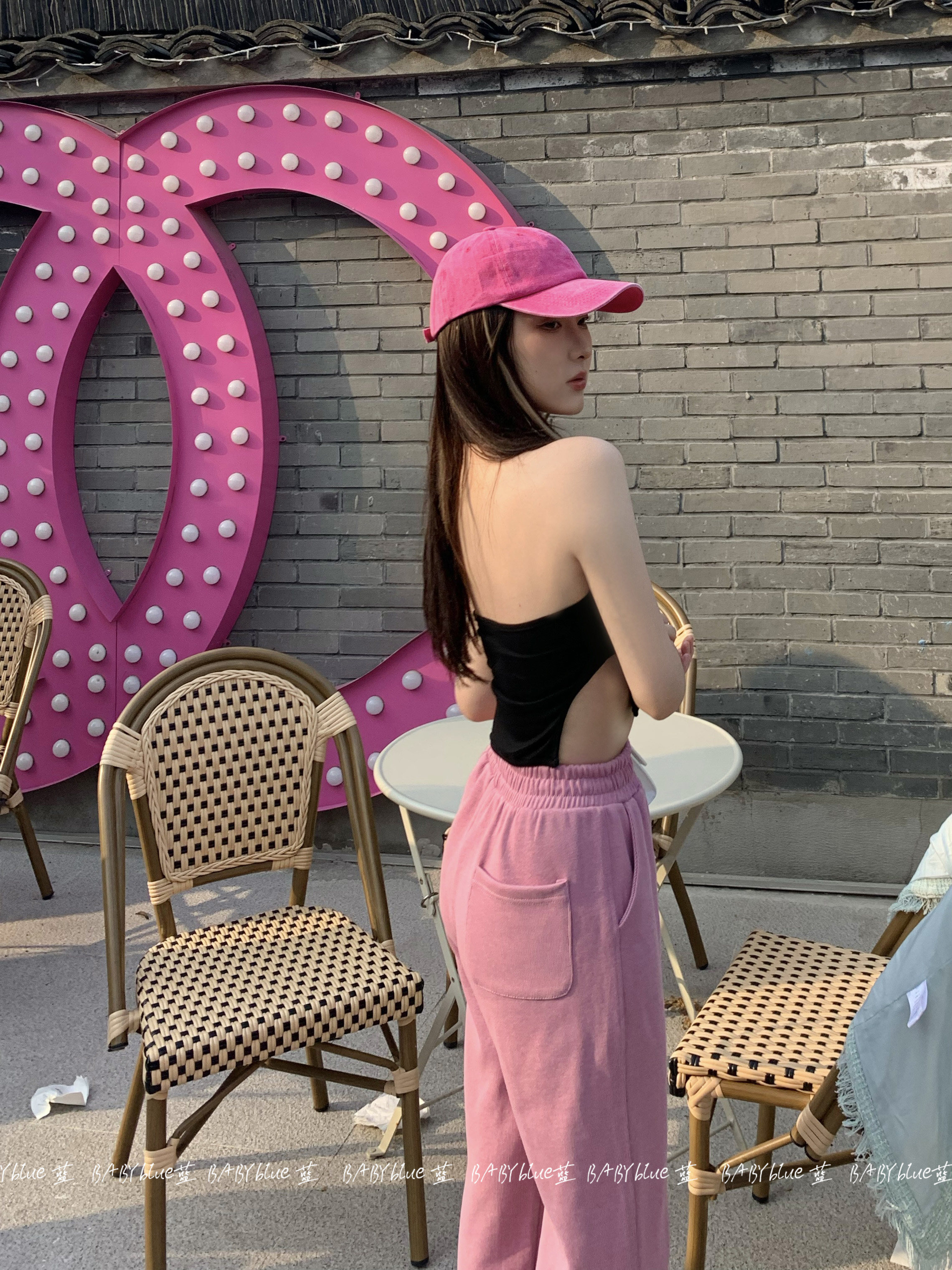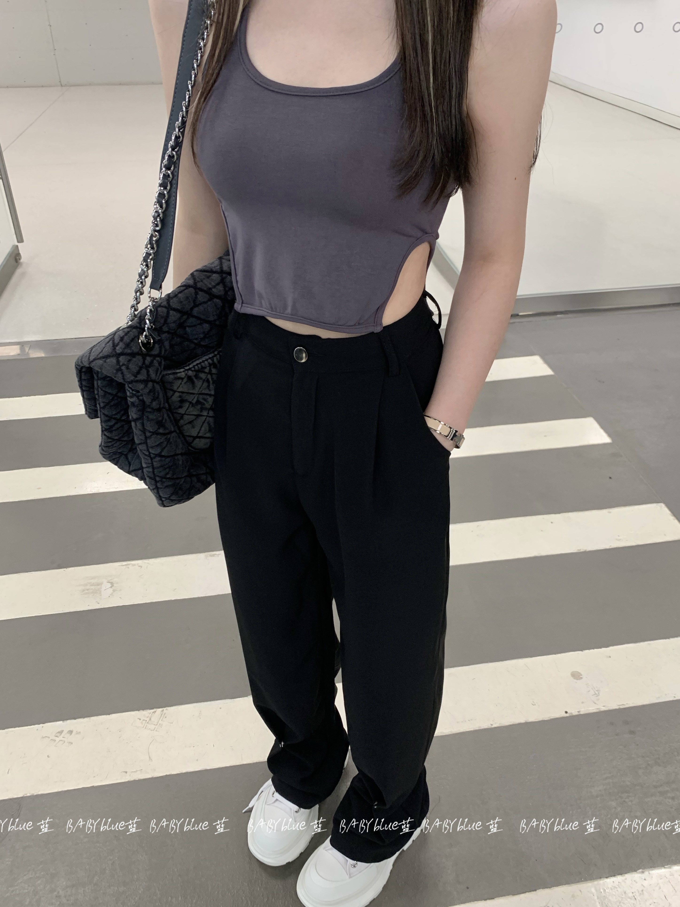 BABYblue (Bangkok Summer) Design Sense American Style Slim Hot Girl Looks Thin Elastic Versatile Hanging Neck Vest Female