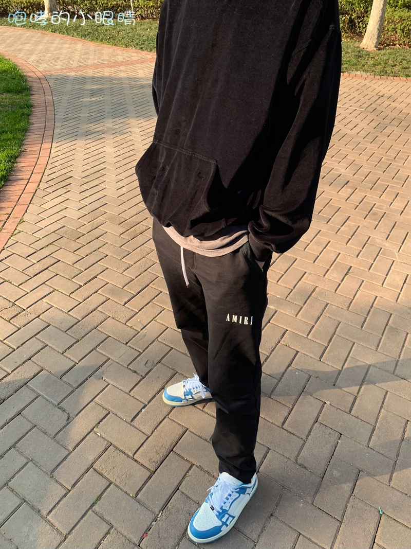 Roaring Little Eyes Amiri Style Black Base High Street Casual Long Pants Sports Pants Non FOG