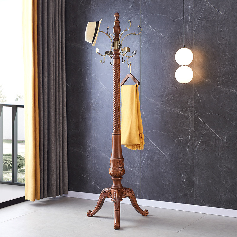 European-style coat rack vertical hanger floor-to-ceiling bedroom solid wood home room single-bar American style large clothes rack