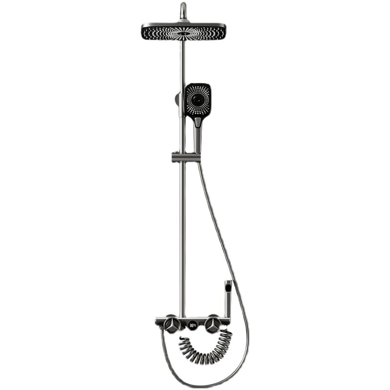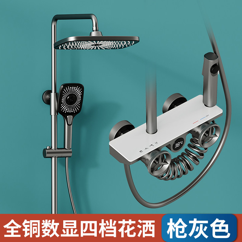 Manglis digital display shower set home wall hanging shower board faucet all copper home improvement water plated gun gray