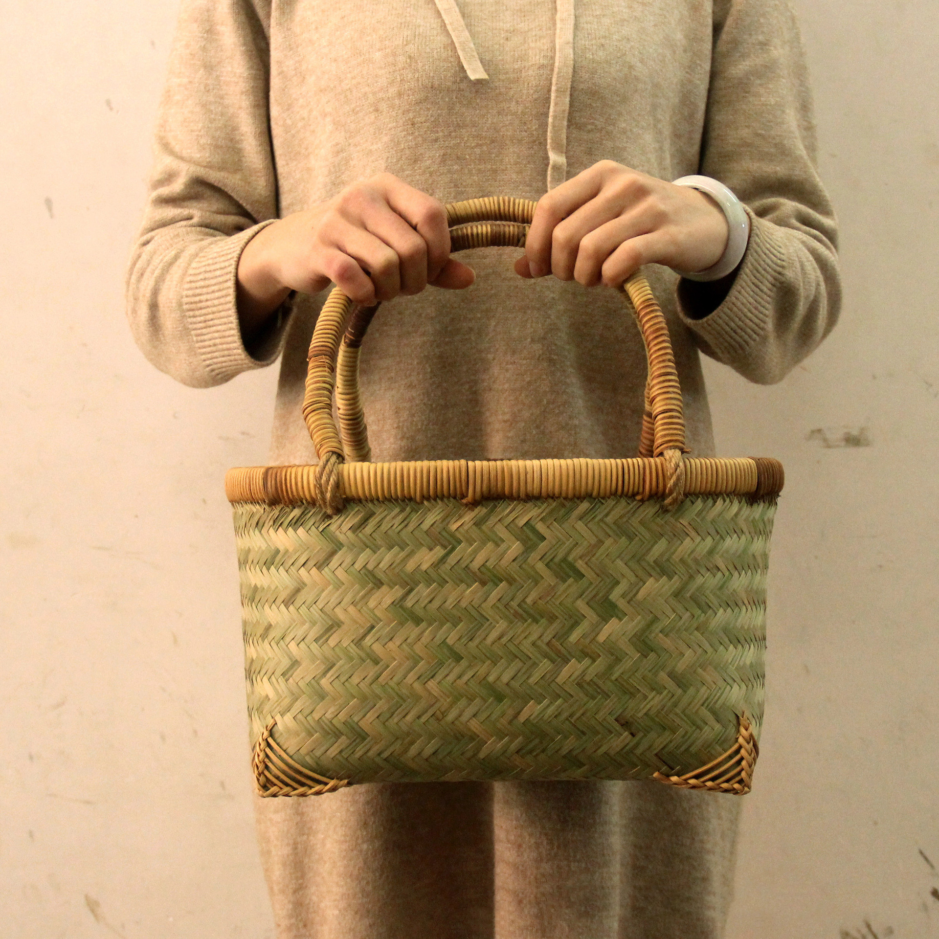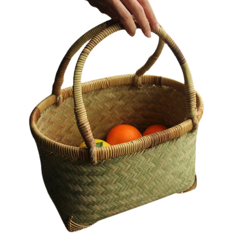 Bamboo woven shopping basket portable shopping basket hand-woven environmentally friendly small shopping basket fruit and vegetable picking basket