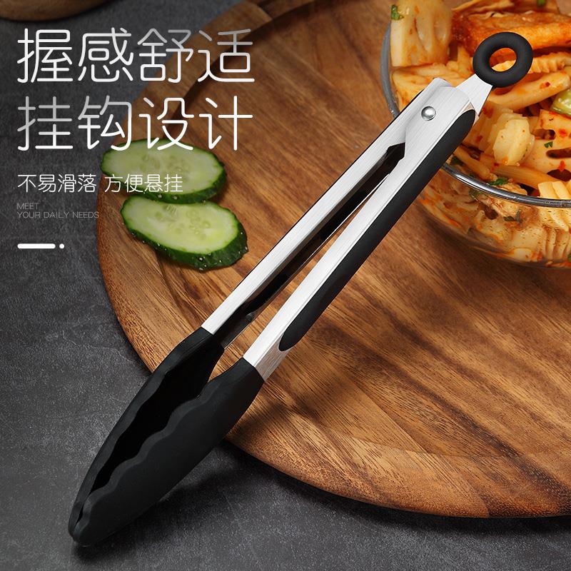 Food Silicone Clips High Temperature Resistant Kitchen Food Bread Cramp Vegetables Fried Barbecue Clips Stainless Steel Steak Clips