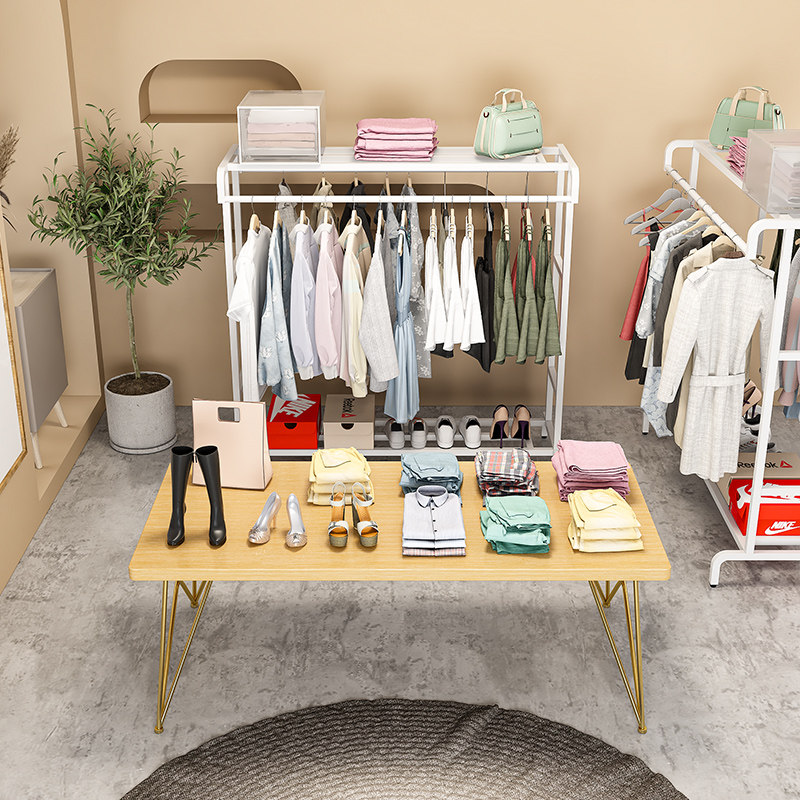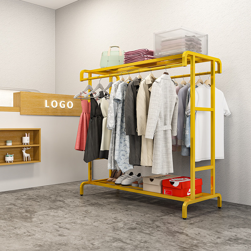Iron Art Hanger Lever Clothing Shop for men and women Double pole shelves Shelves Ground Style Bag rack Rack Clothes Rack Clothes Rack