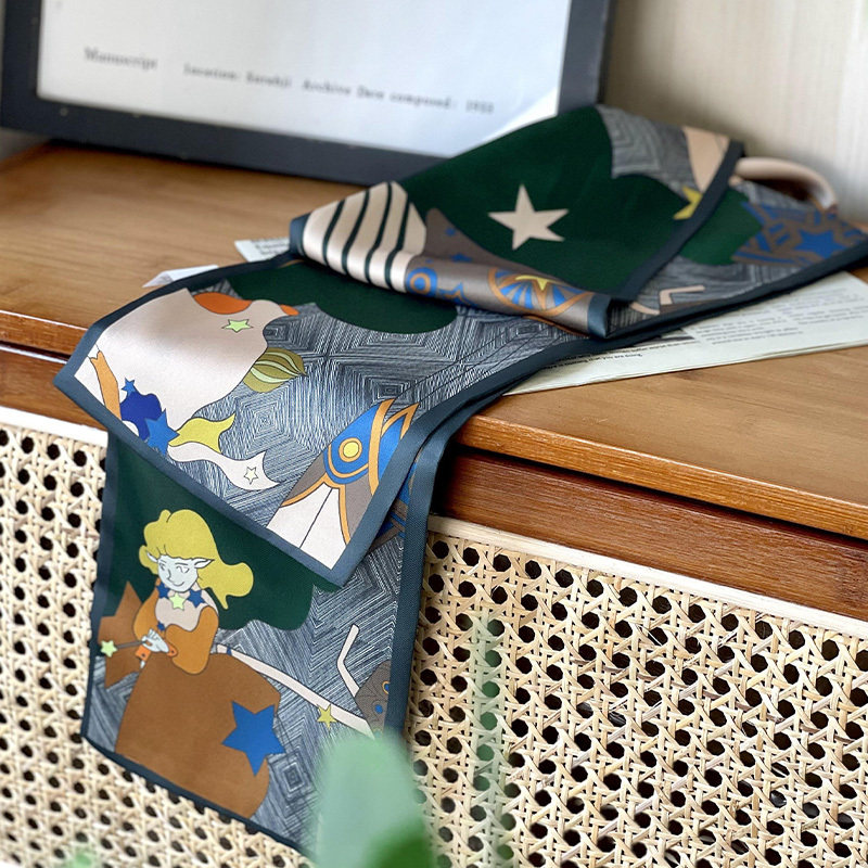 MAUR flower scarf zebra pattern black and white zebra pattern brown flota pattern dark gold flota pattern black and white advanced diamond pattern illustration Korean version of floral yellow edge Korean version of floral blue edge Hepburn style elegant bow pattern