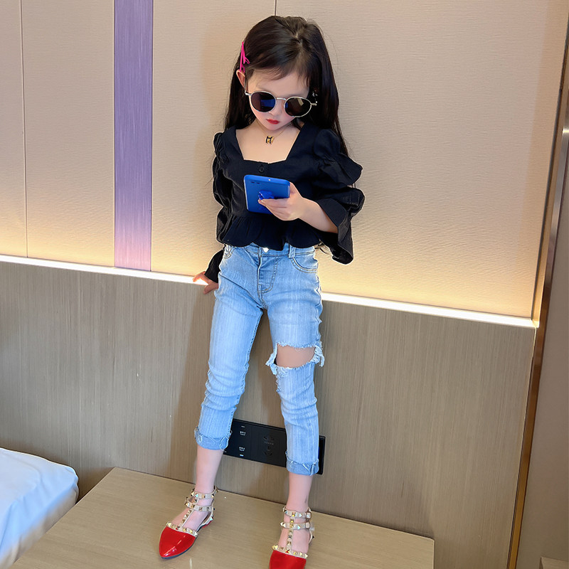 Girls Shirt 2022 Summer Dress New Korean Version Doll Shirt Fashion Foreign Style Long Sleeve Puff Sleeve Tops Bottoms Tide