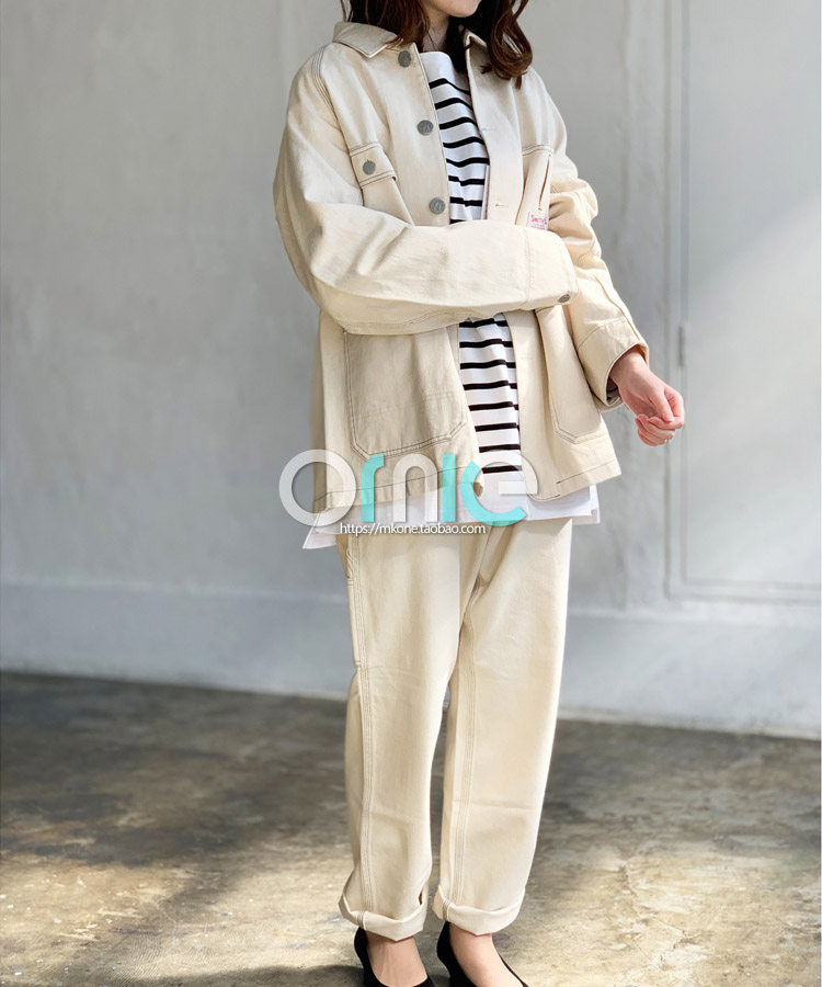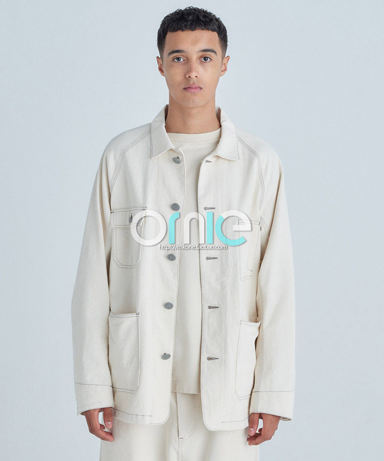 American retro tooling Smith Japanese fabric sturdy and resistant to thick, solid washed cotton loose profile multiple-bag jacket