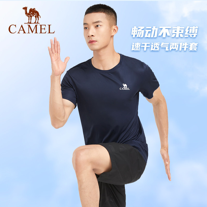 Camel Speed Dry Through Gas Movement Suit 2022 Summer and men Identical Running Yoga Fitness Short Sleeve Shorts Two Sets