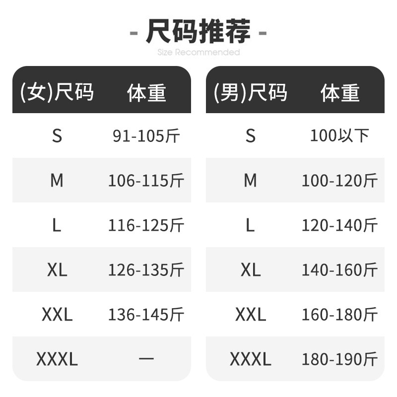 S (men's 100 and below 91 ~ 105 catties) M (men 100 100 ~ 120 catwomen 106 ~ 115 catty) L (men 120 120 ~ 140 catwomen 1)