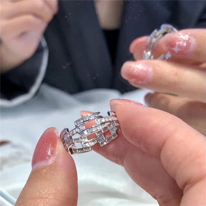 New neutral ins wind 18K Platinum total 86 Genuine Diamonds Group Inlaid ring 5mm Wide version of chain ring