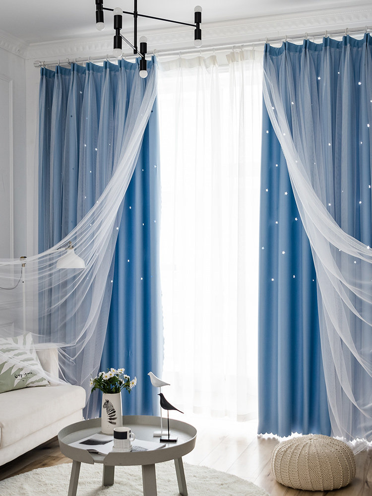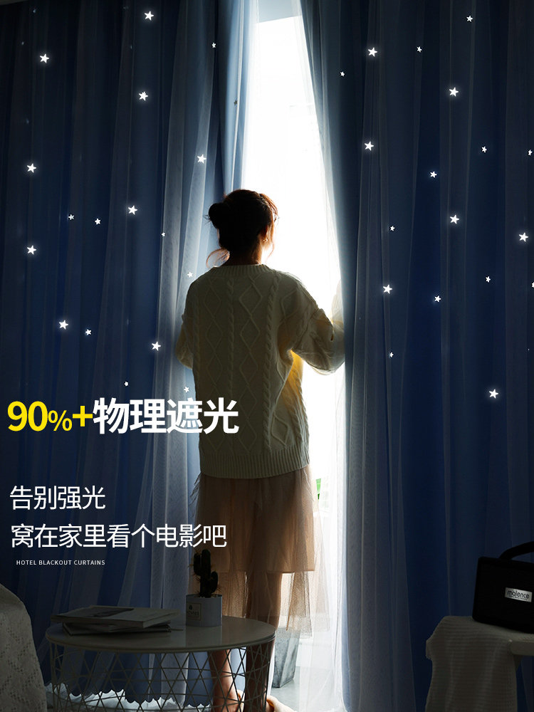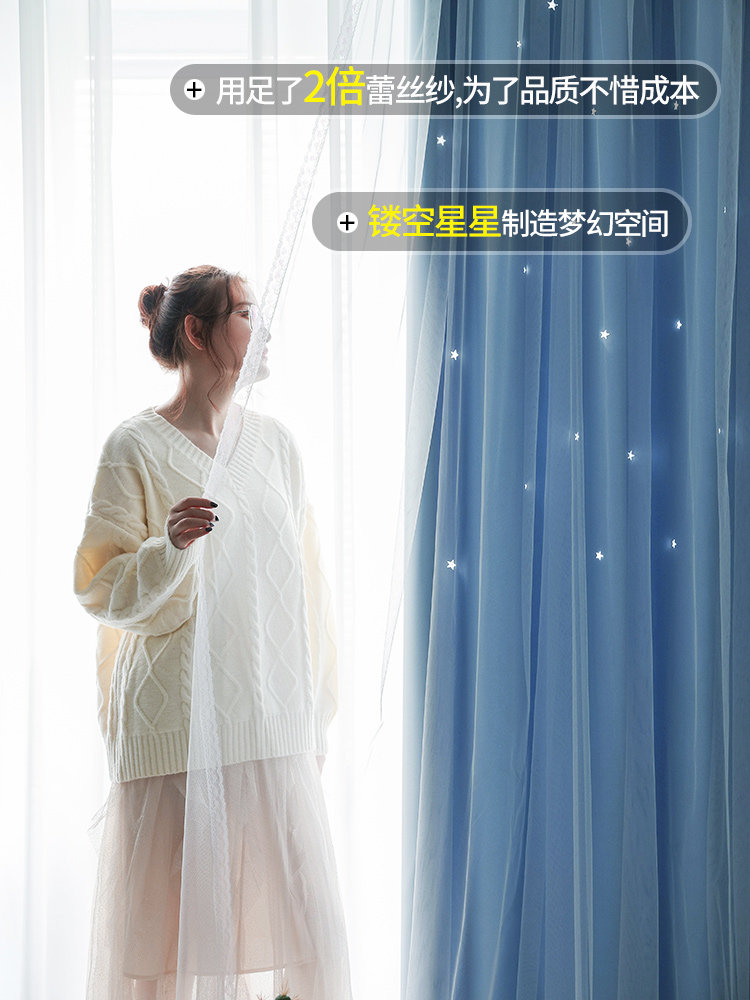 Curtains 2022 new bedroom full blackout cloth hook-type insulation gauze curtain balcony custom living room net red sunscreen