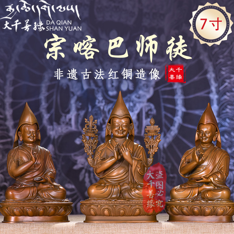 Great Thousand Good Ancient Law Red Bronze 7 Inch 25cm Zongkakshi Apprentice Three Statues of Three Buddha Hidden Bronze Statue of Bronze Statue at the Mercy