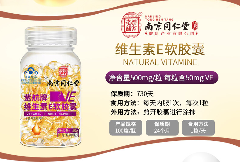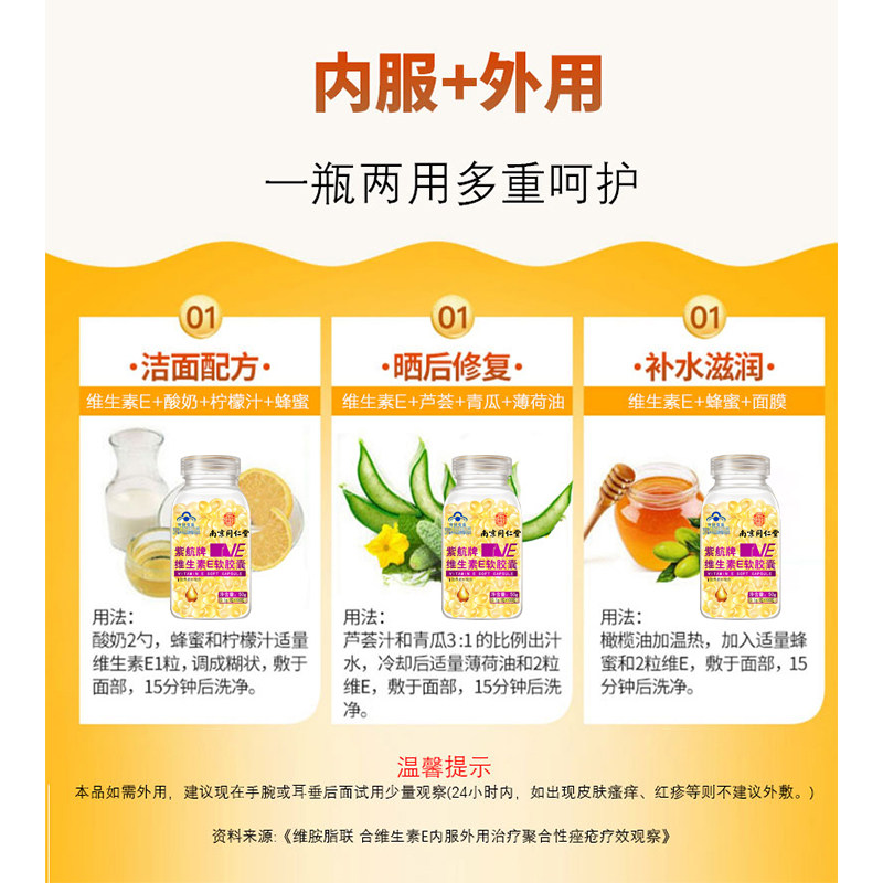 Nanjing Tongrentang Vitamin E Soft Capsule 2 bottles * 100 grains of outside coated bruised face to be served with VE oil ve made face mask