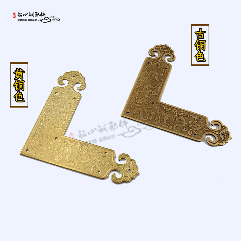 Chinese antique pure copper corner guard retro furniture cabinet corner code cabinet door L-shaped corner piece corner lace door and window frame corner engraving