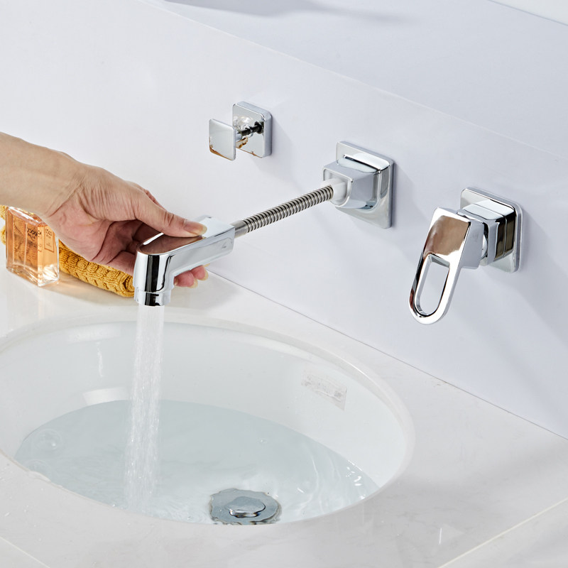Bath-room cabinet surface basin tap hot and cold washbasin washbasin Three-piece four pieces two-piece style pull-out tap accessories