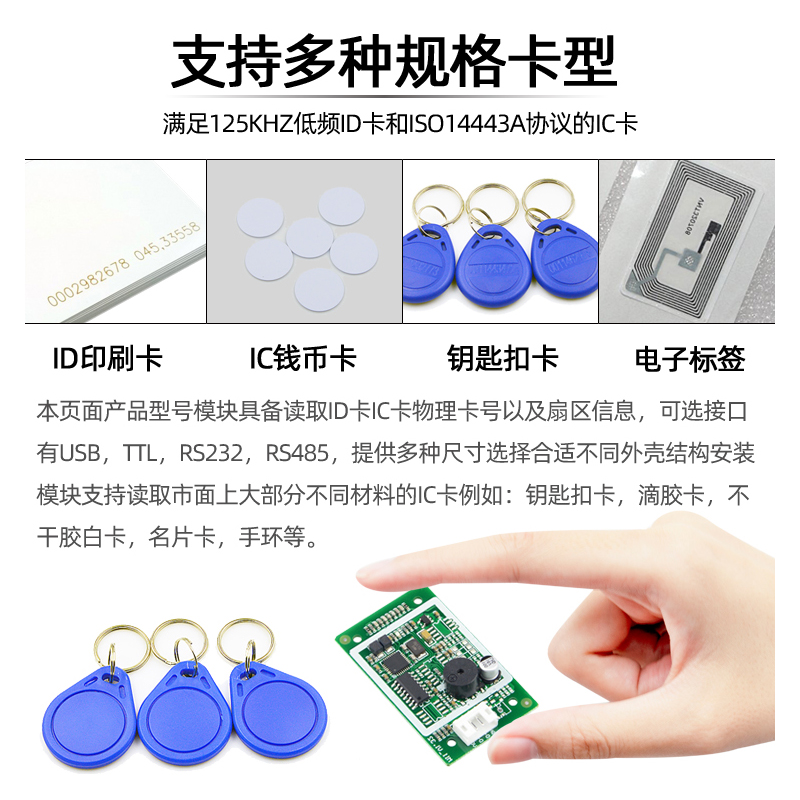 Embedded IDIC card reader module Mifare card reader RS485 access control reader member sign-in NFC card reader