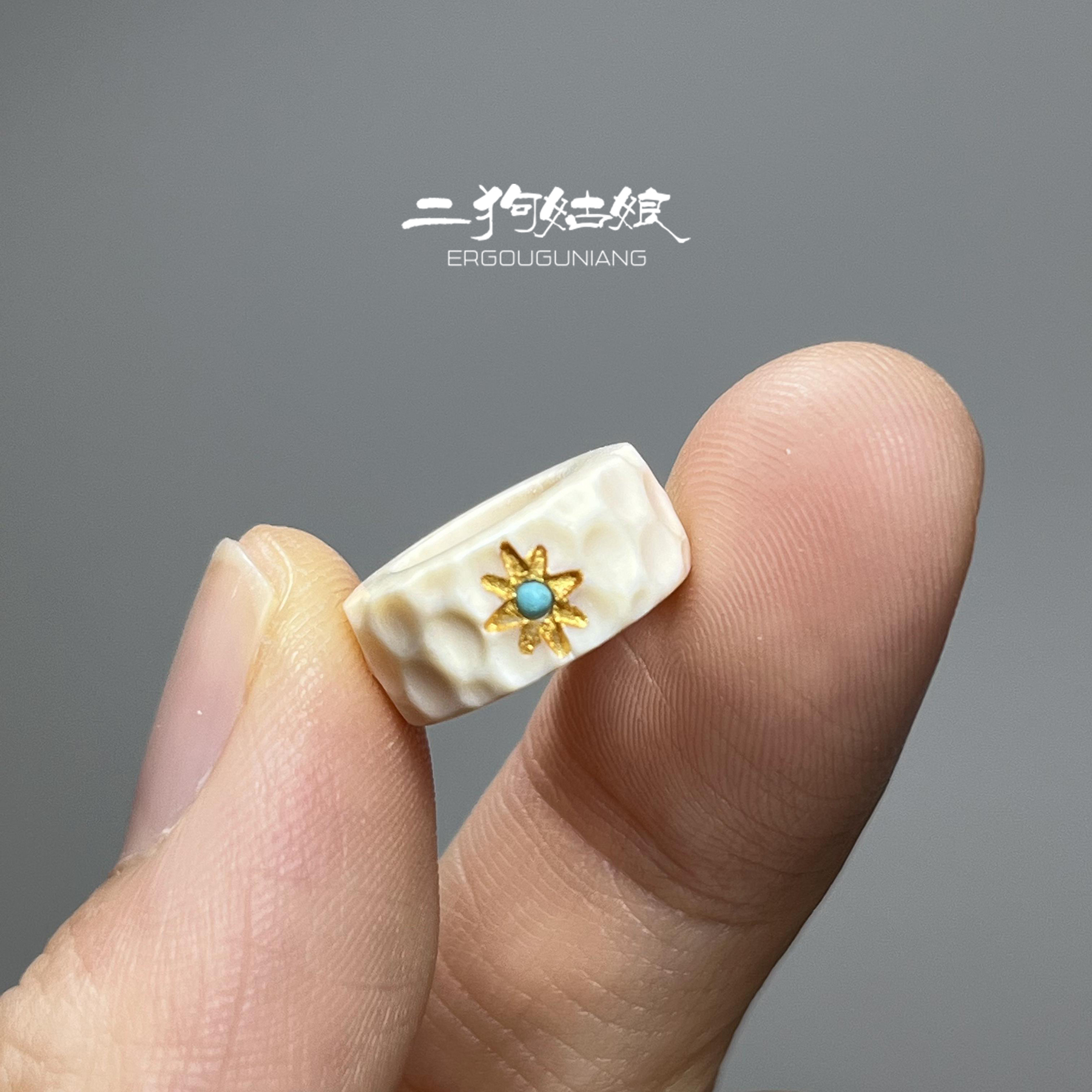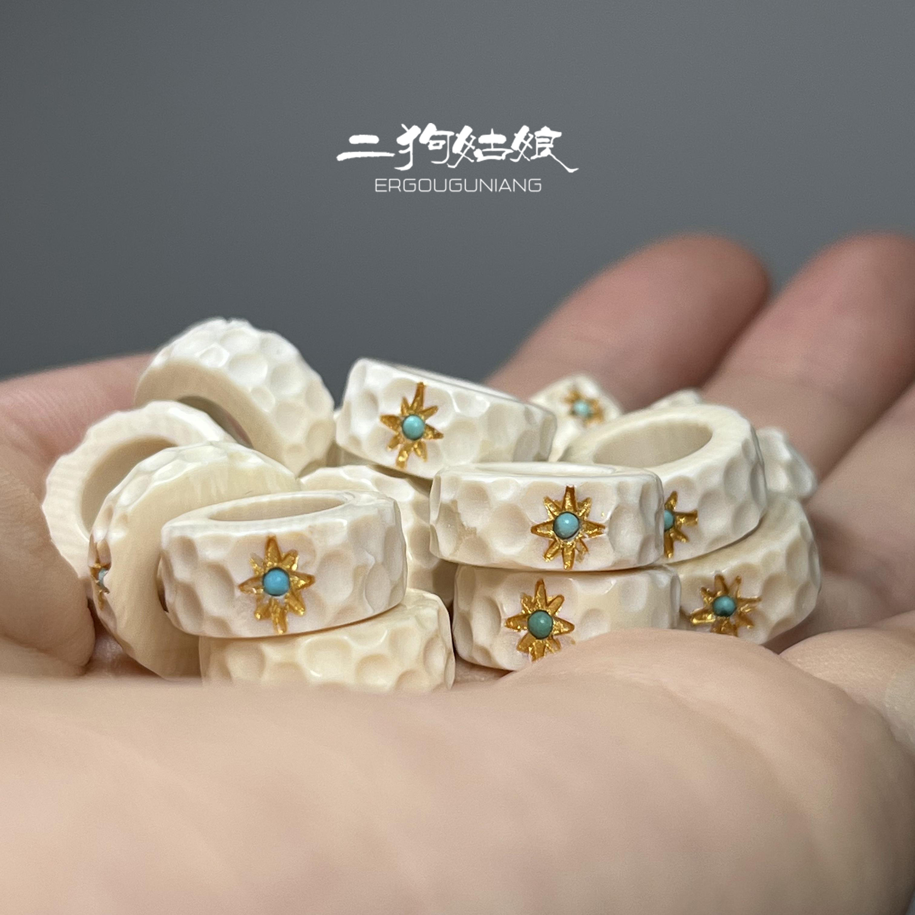 (8mm small inner diameter inlaid running ring) mammoth ivory carved monkey head bracelet text play hand twist accessories two dog girls