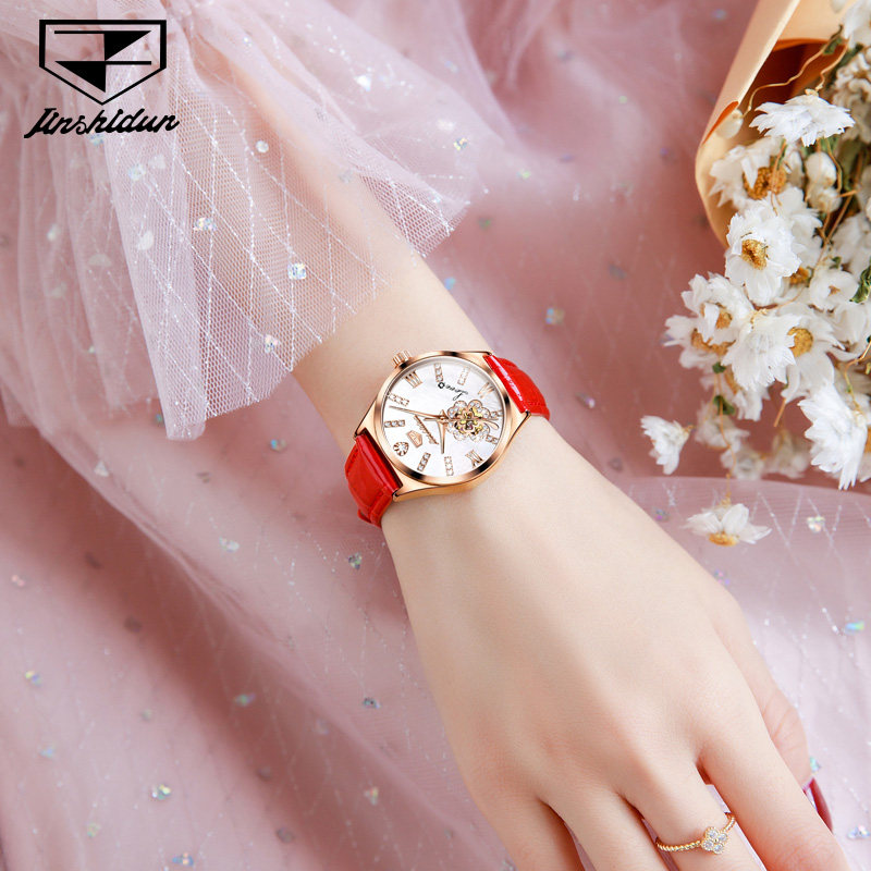 Official hollow mechanical watch female automatic waterproof brand watch ladies belt brand name brand simple top ten