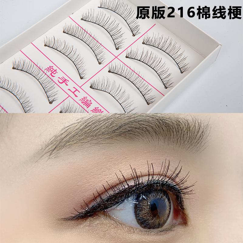 Pure Handmade 216 Fake Eyelash Woman Natural Short Nude Makeup Realistic Cotton Thread Stalk Photo Gallery 217 Eyelash 10 Pairs Dress