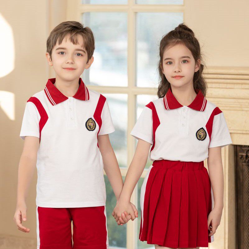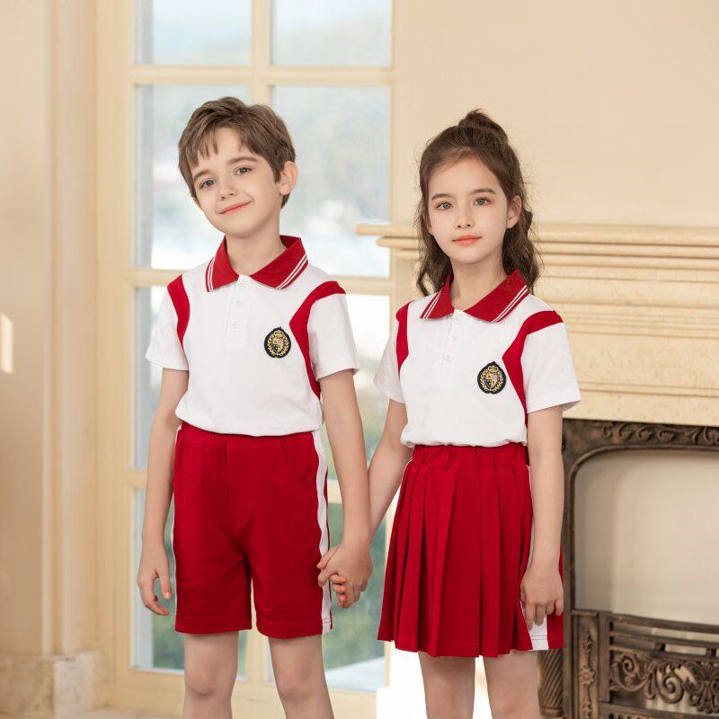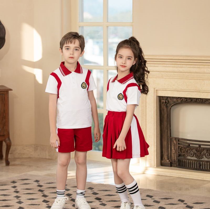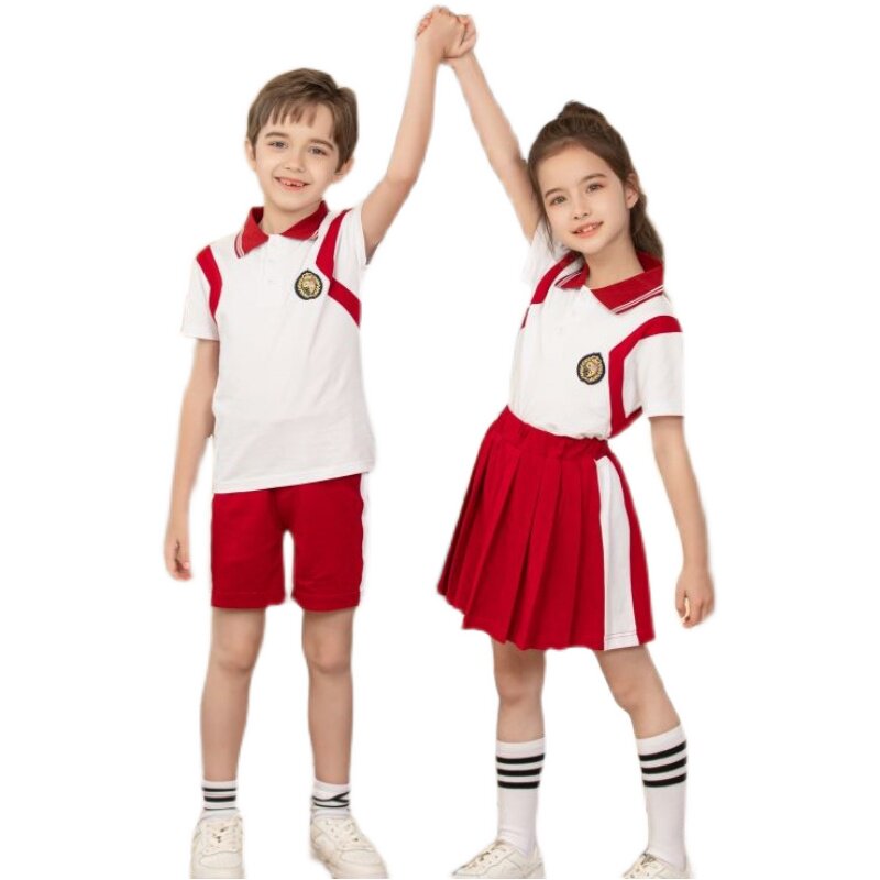 Kindergarten Garden Clothing Red Summer New Sports Wind Pure Cotton Custom Elementary School Children School Uniforms Two Sets Summer Class Clothes