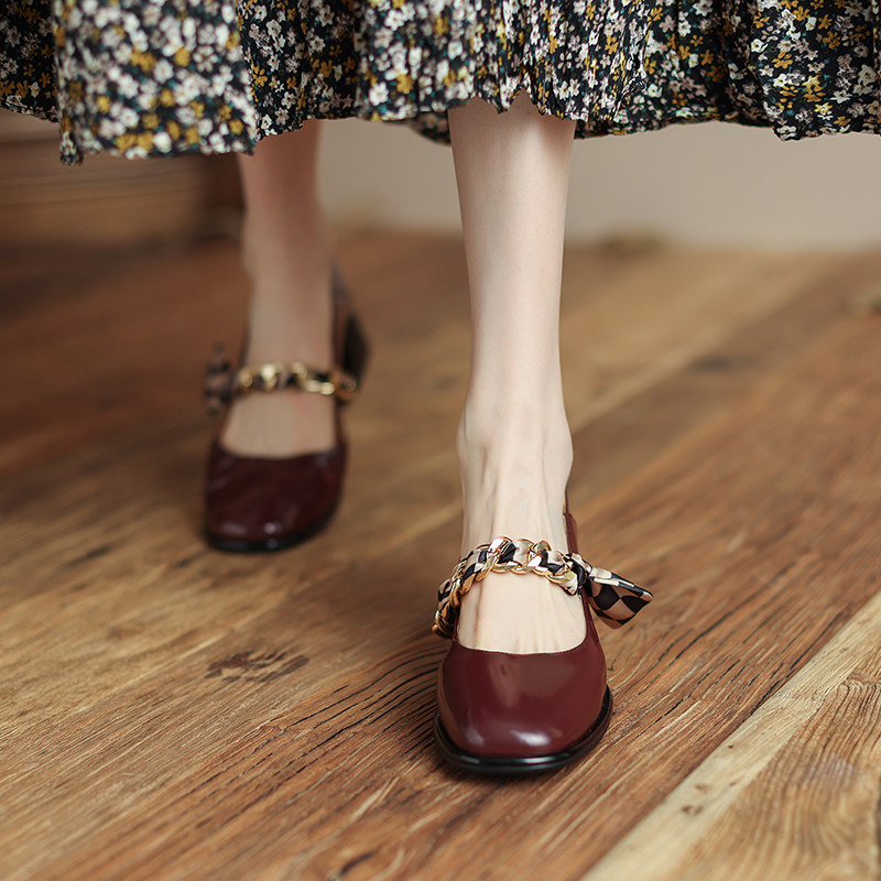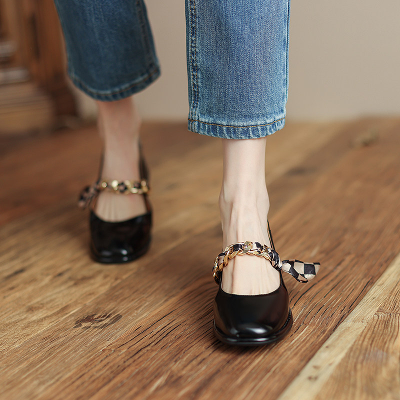 OMG Giant ladies' temperament ~ French style square head Mary Jane shoes in thick heel single shoes