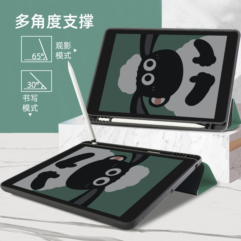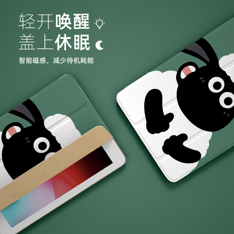ipadair5 protective sleeve with pen slot Cartoon goat mini6 cute ninth generation 4 anti-bend 2021 book type 6 flat 8 silica gel 2020 all-bag suitable for apple pro11 triple-fold