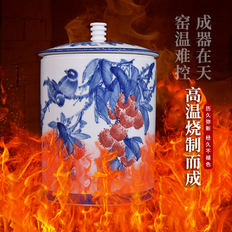 Jingdezhen ceramics hand-painted blue and white tea storage jar gift office home living room desktop decoration ornaments