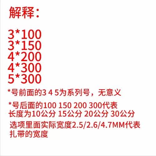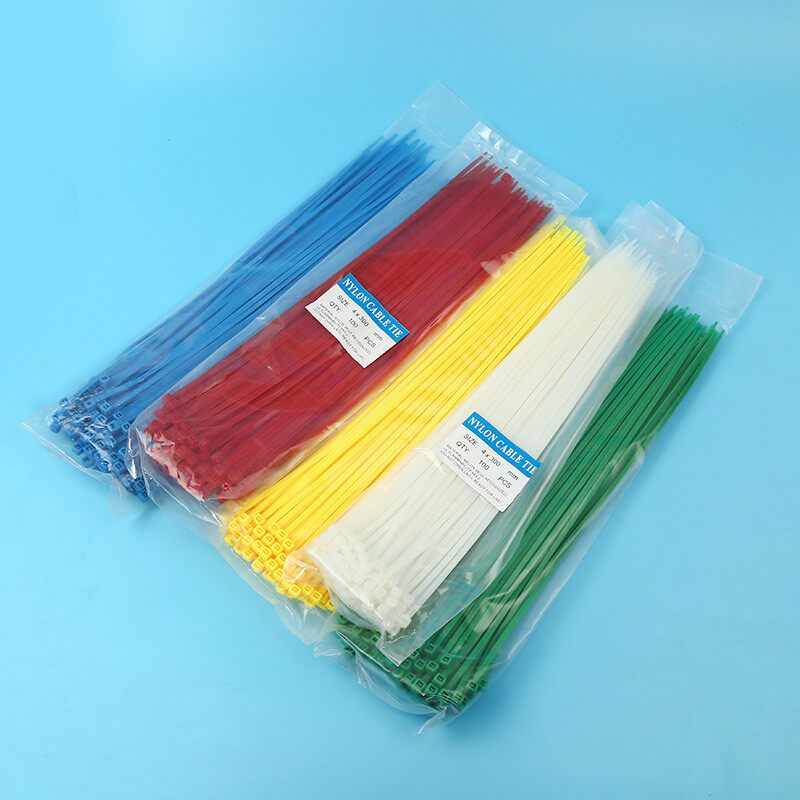 Self-locked plastic colored ribbon 3 * 4 * 5 * 100 * 150 * 200 * 300 nylon tie red yellow green blue black and white