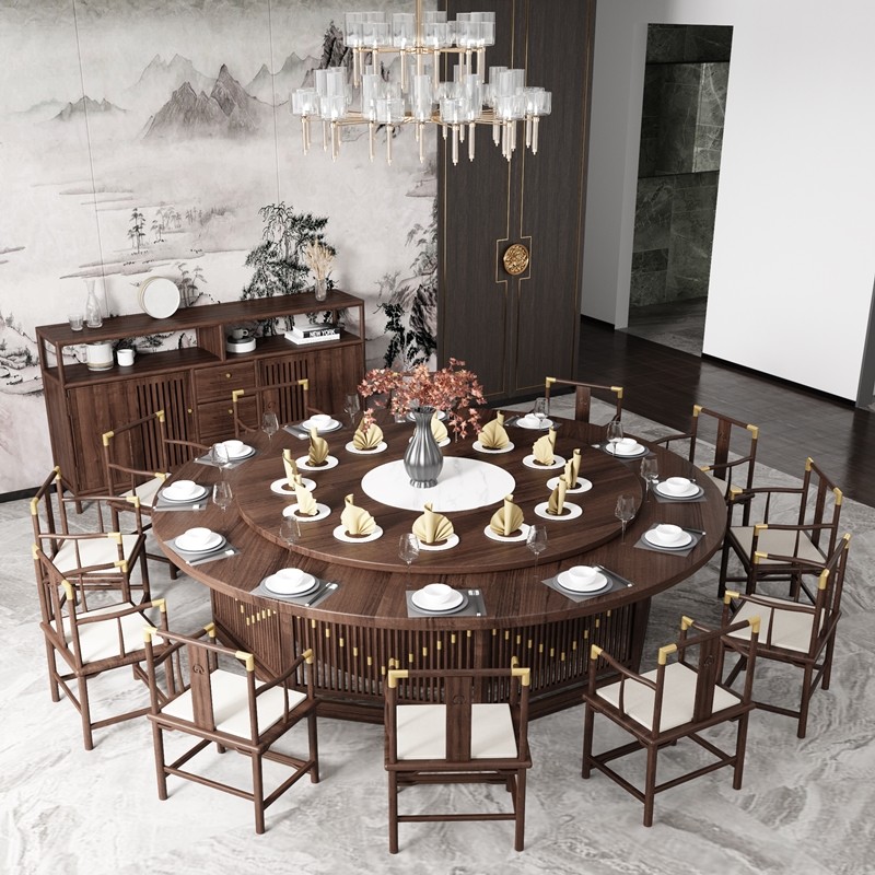New Chinese style hotel table big round table 10 people 15 people 20 people will bag the box solid wood electric rotary tray hot pot table