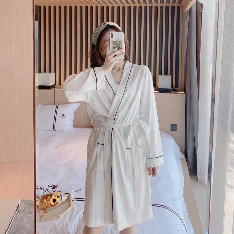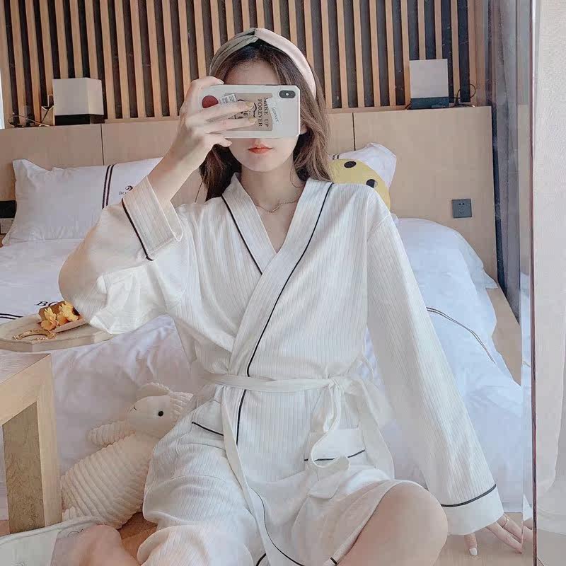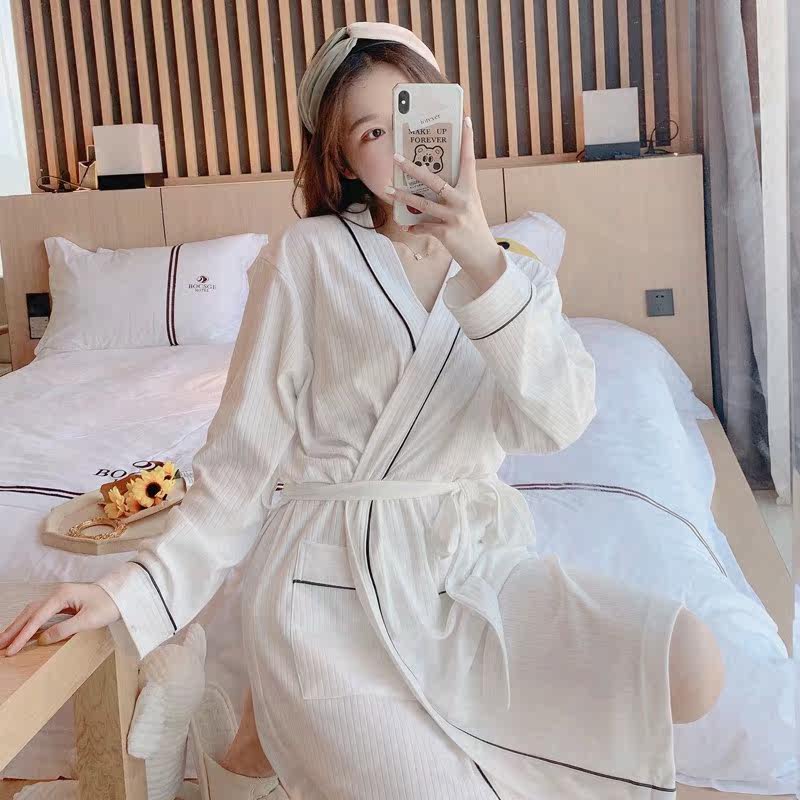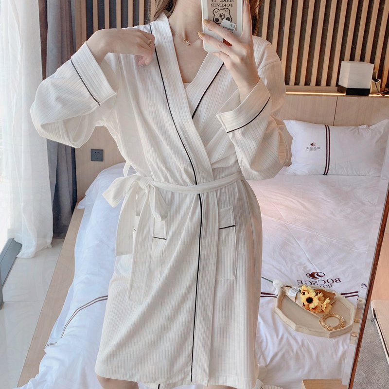 Pure Cotton Sleeping Robe Woman 2022 New Summer Long Sleeves Sweet senior feel Jane approachable Pure Color Cute Home pyjamas