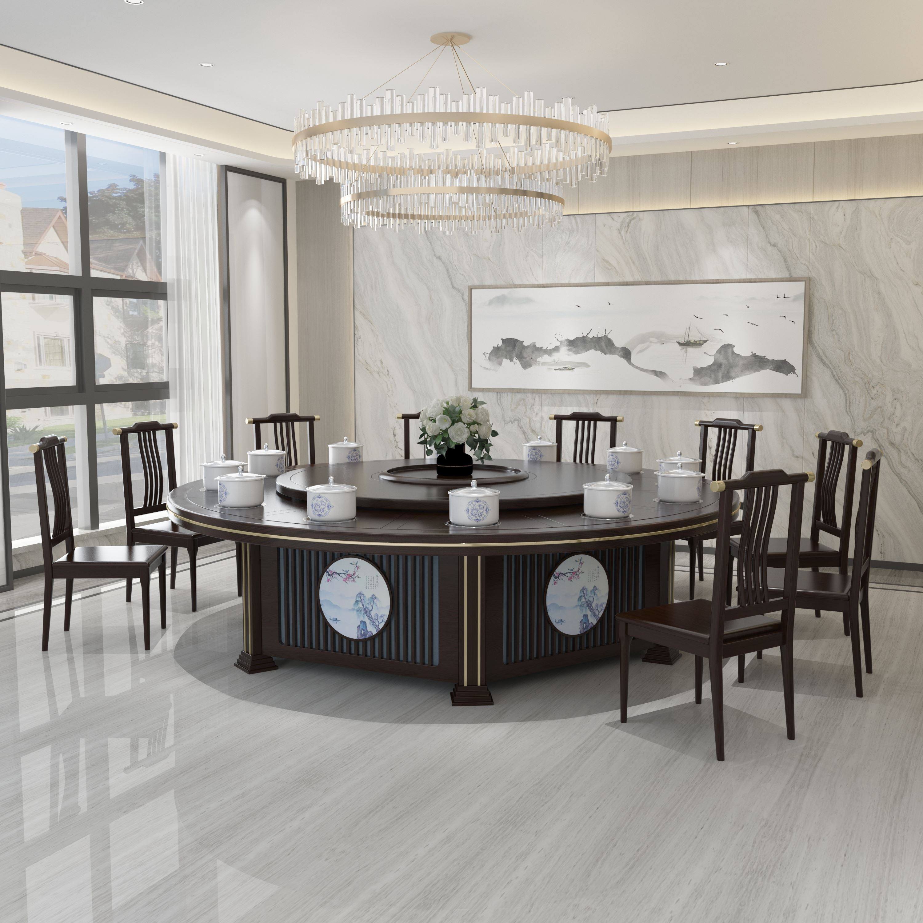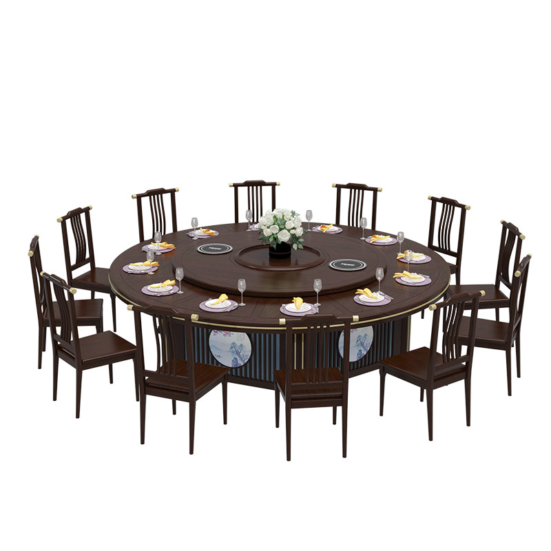 Hotel Large Round Table Electric Turntable Electric Turntable Dining Table Hotel Table Hotel Table And Chairs Combined Box 15 15 20 16 16 New Chinese 2 m