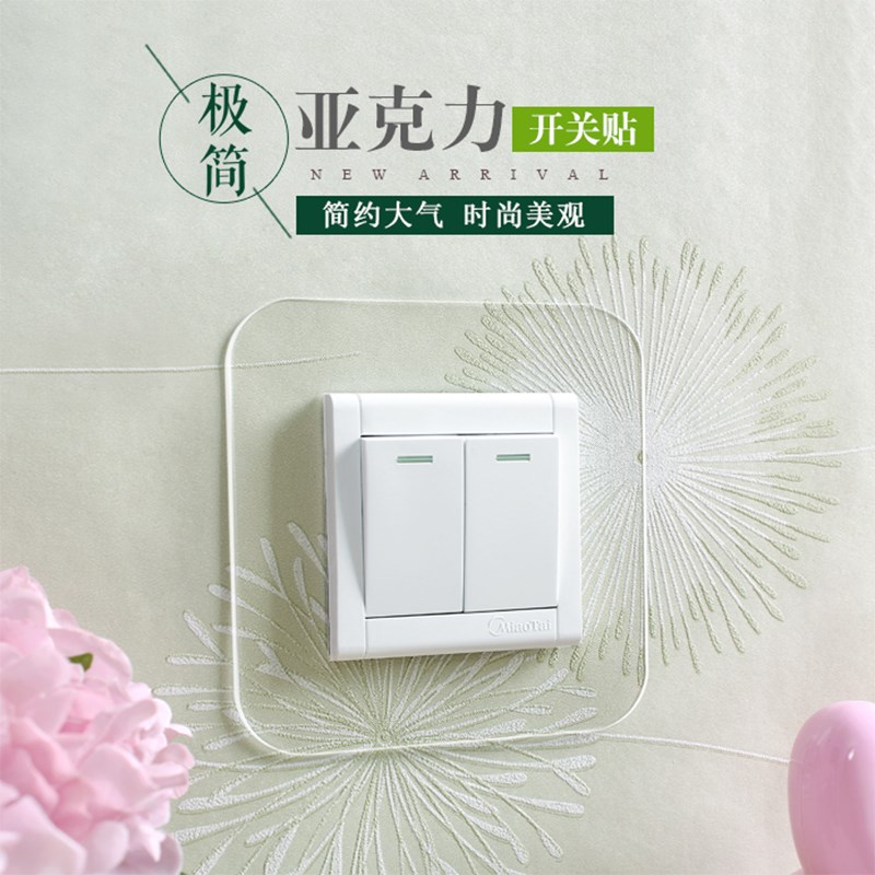 White transparent acrylic switch patch wall patch socket with protective sleeve modern minimalist living-room double-frame triptych