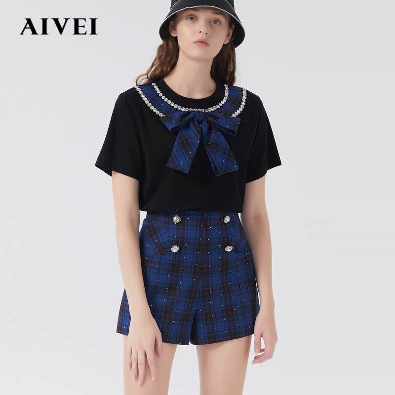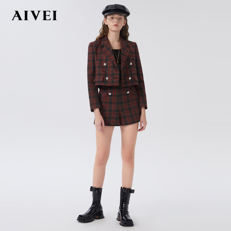 AIVEI congratulates Ivy Mall on the same spring sticky diamond double-breasted checked high-rise wide-leg shorts O711002B