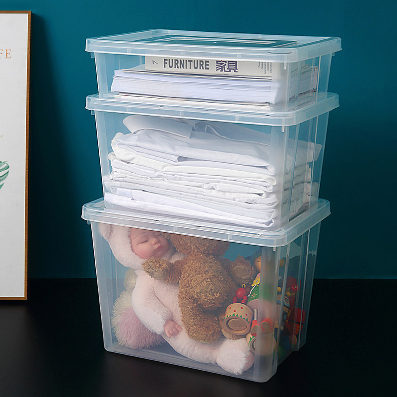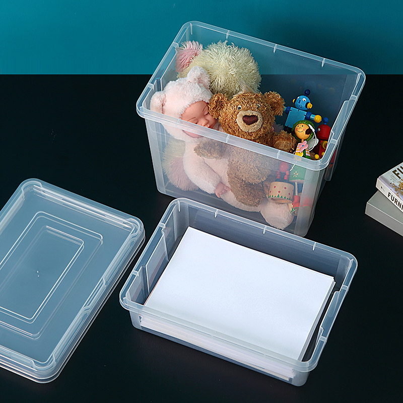 Transparent plastic desktop file storage box flat box student book organizer box home toy storage box