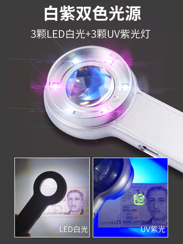 Baisterhandheld magnifying glass 60 times with lamp to identify high-definition charging repair table Guven playing with luxury jewellery-Taobao